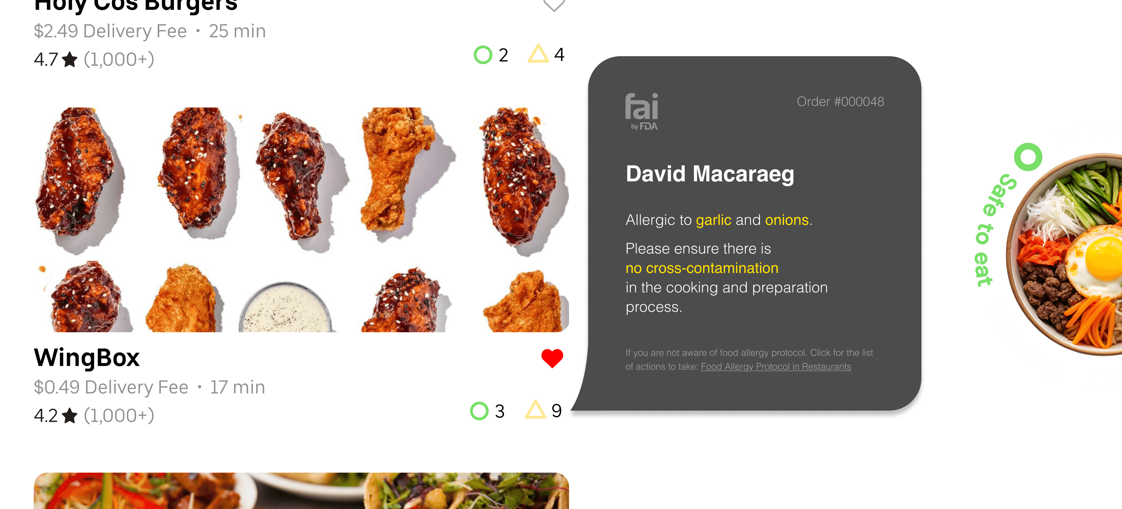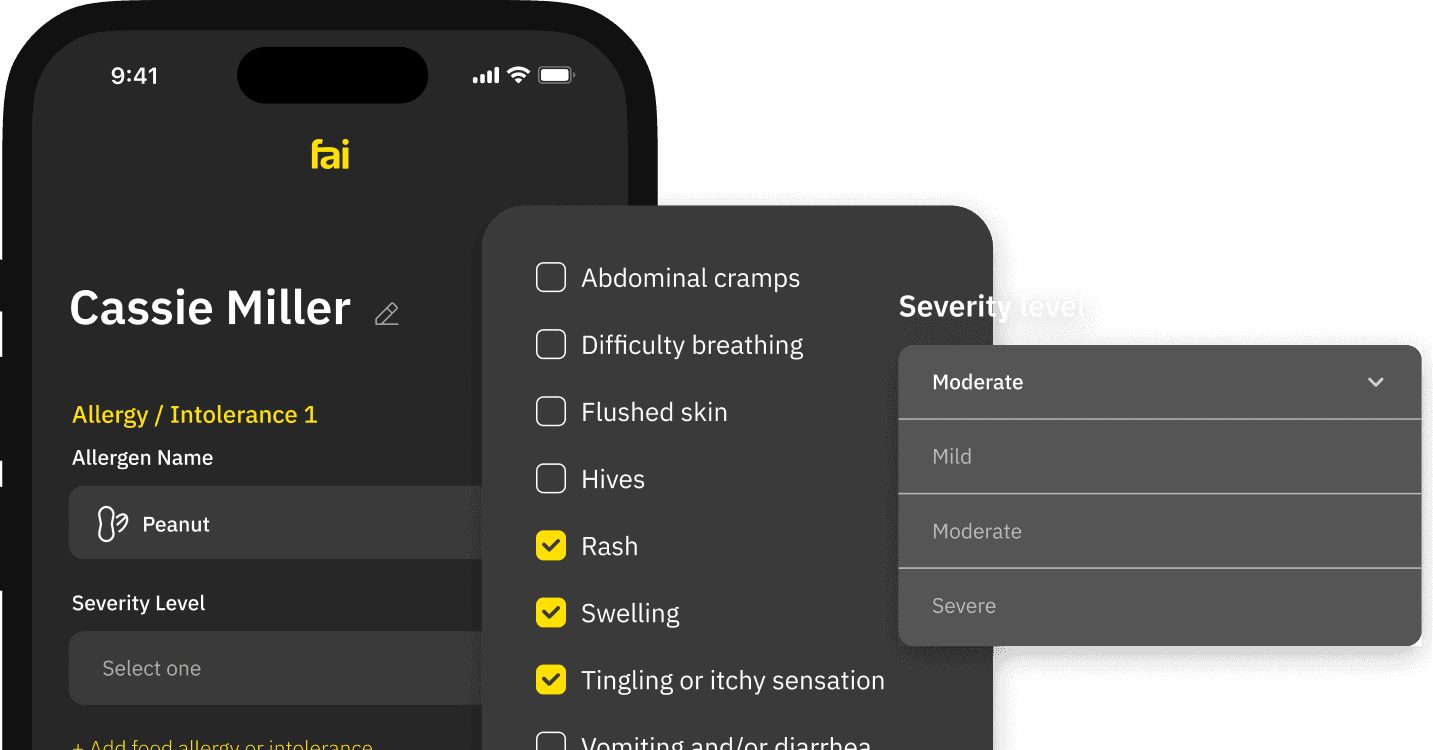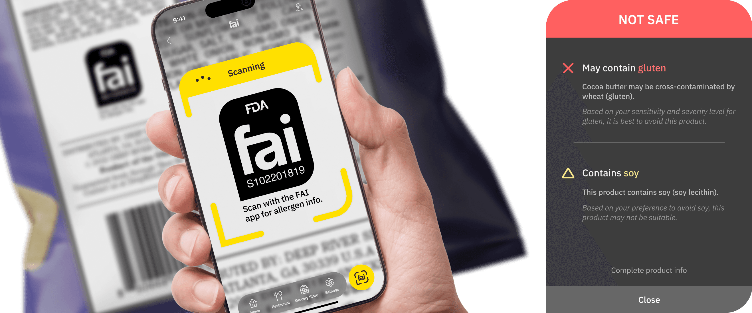 FAI (Food Allergies & Intolerances) is a new FDA regulation system that keeps record of the presence of allergens & intolerances in every food product and restaurant. With the dedicated app, scan food items and menus with our unified label system to quickly identify potential allergens.